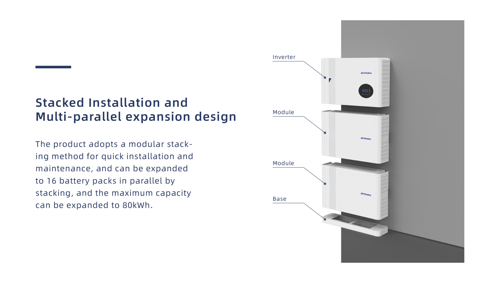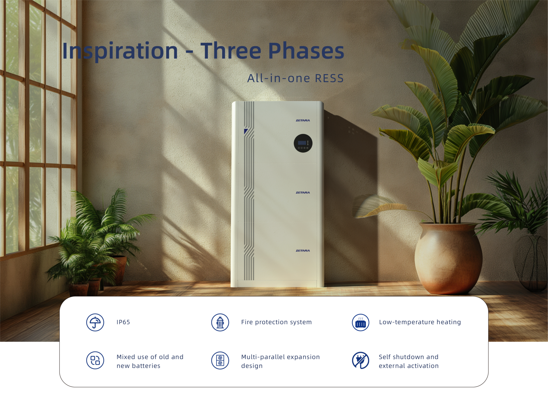 Das All-in-One-System (einphasig & dreiphasig) verwendet ein IP65-Design und wird hauptsächlich für Haushalts-Photovoltaikanlagen eingesetzt. Es integriert einen Hybrid-Wechselrichter und ein LFP-Batteriepack. Das Batteriepack verfügt über ein modulares, erweiterbares Design, das eine flexible Leistungsconfigurierung ermöglicht. Das Produkt unterstützt gleichzeitig den Anschluss an das Stromnetz, die Photovoltaikanlage und die Batterie und bietet die Funktion des Inselbetriebs.